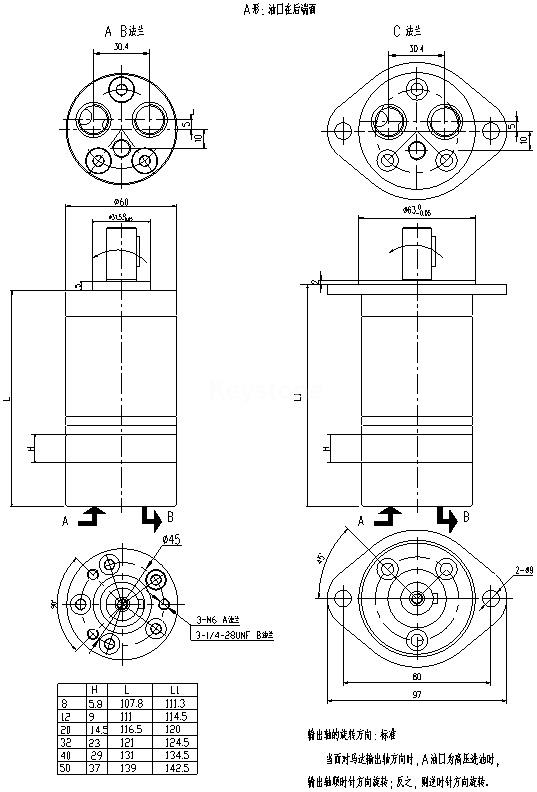 HMM 系列马达是一种微型轴配流马达,能够在很小的空间安装使用。采用活针齿 定转子副,结构紧凑、重量轻、功率大。其特点: