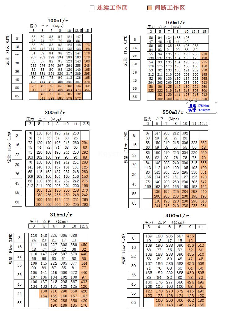 3.避免在同时最大速和最高压力的工况下使用.