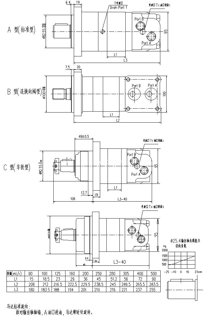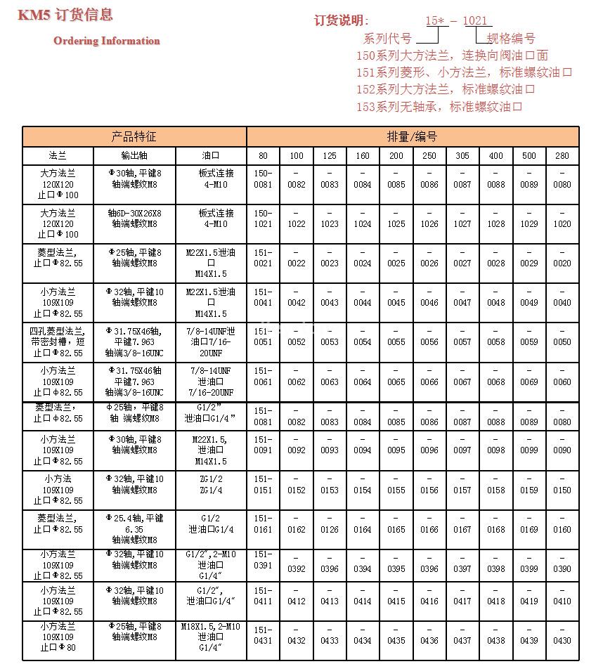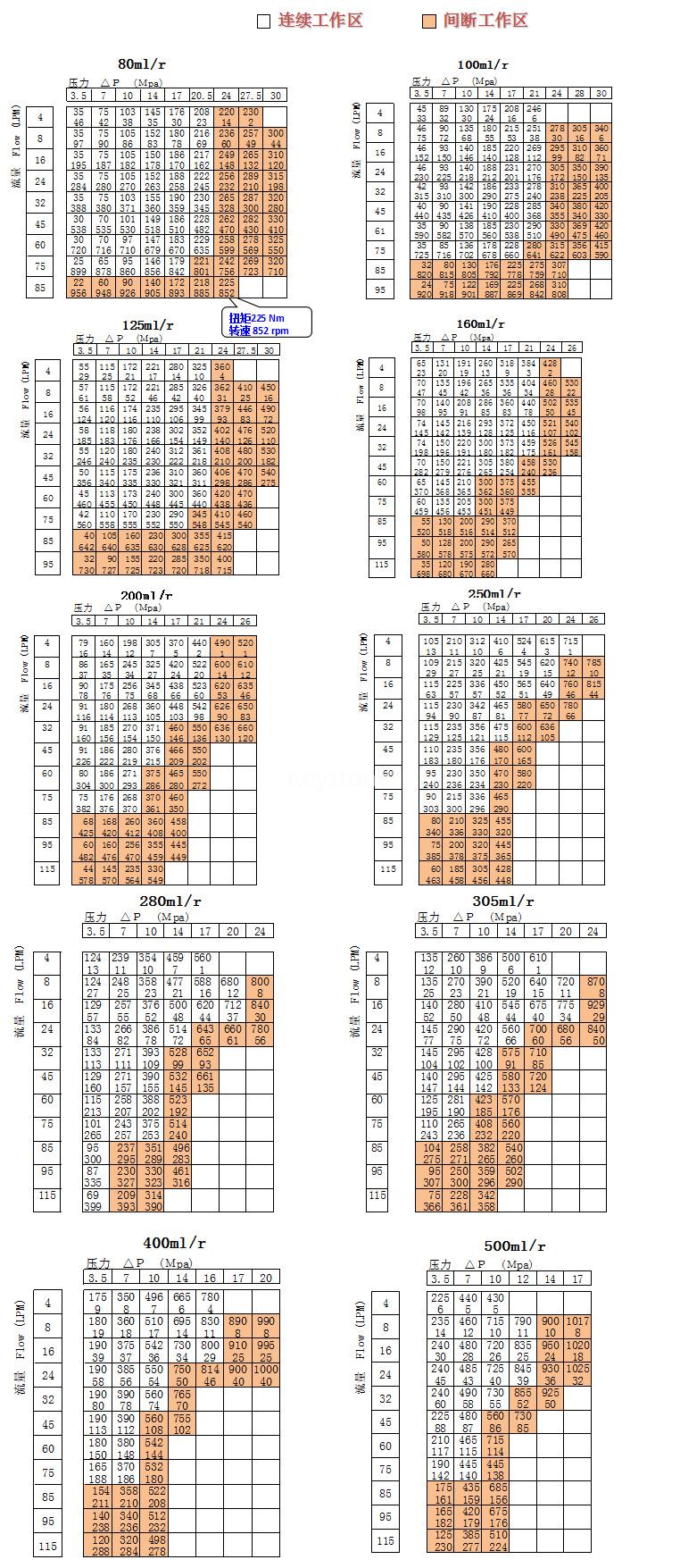 排量(ml/r) | 80 | 100 | 125 | 160 | 200 | 250 | 280 | 305 | 400 | 500 | |